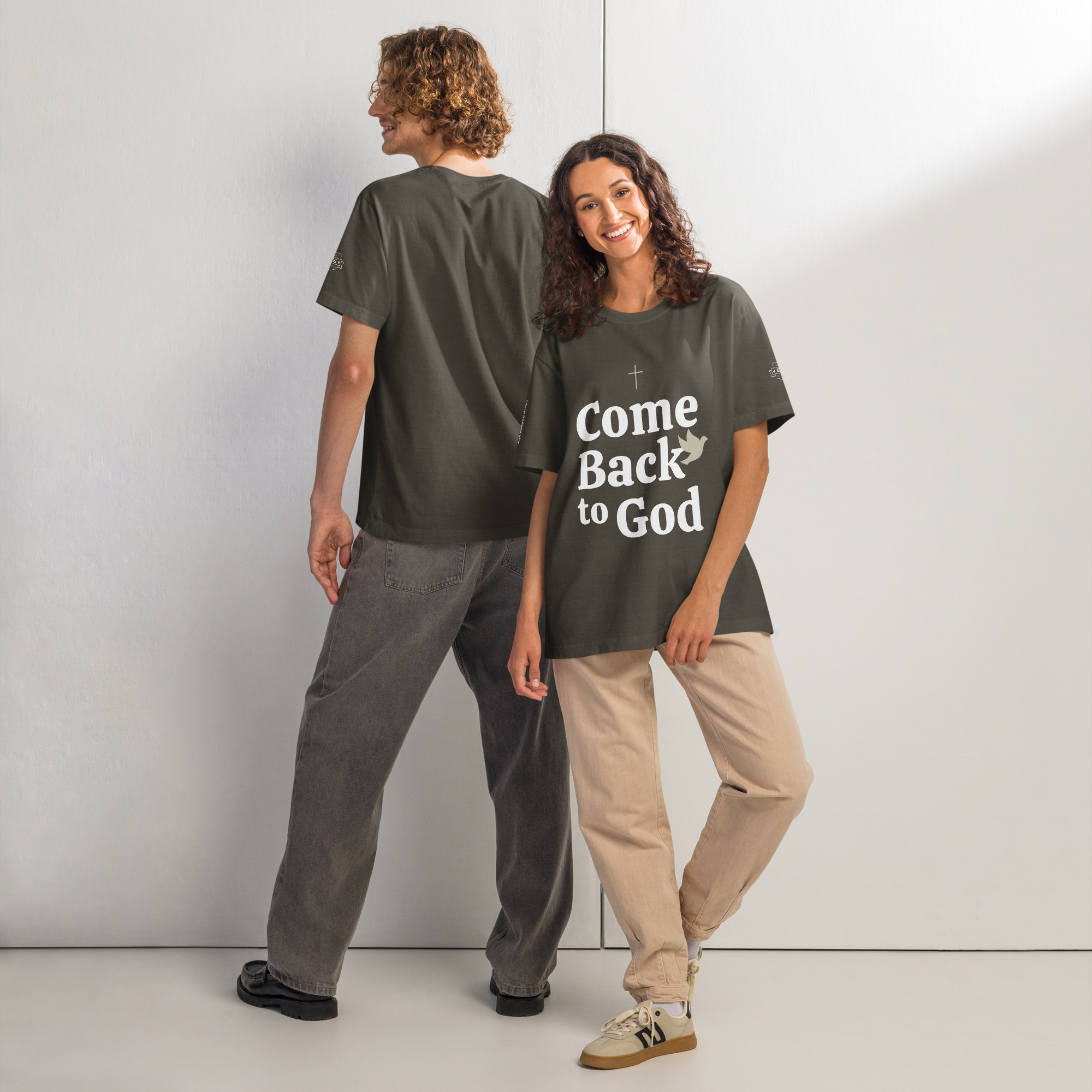Simple. Direct. Eternal. The Come Back to God Oversized T-Shirt carries a bold invitation in a relaxed, modern fit. Designed to stand out while staying effortless, this piece speaks to wandering hearts and reminds the world that grace is always within reach. This heavyweight oversized tee nails that laid-back streetwear look. Made from 100% cotton, it’s soft, structured, and perfect for layering or wearing solo. With a vintage-washed vibe, it’s made to stand out without trying too hard.